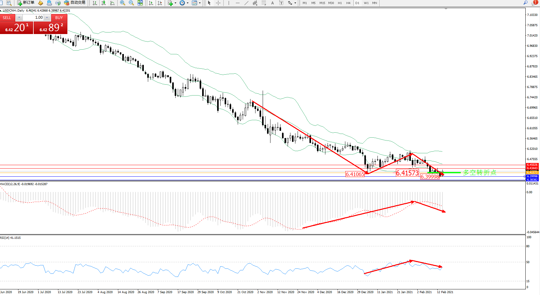 交易策略:6.41573上方看涨,目标6.43443、6.45026