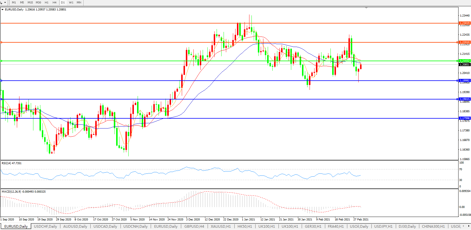 欧元兑美元EURUSD   日线图: