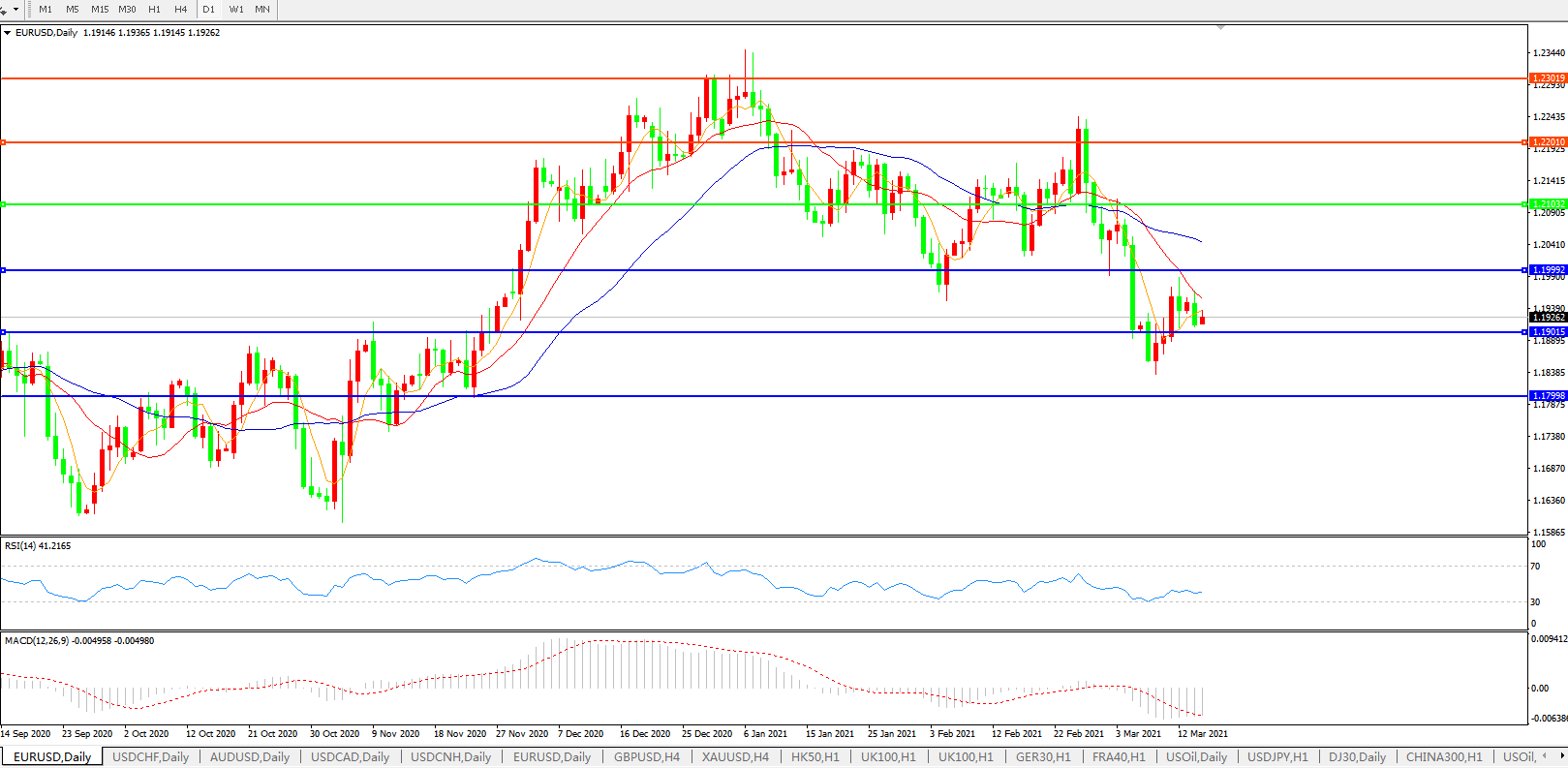 欧元兑美元EURUSD   日线图: