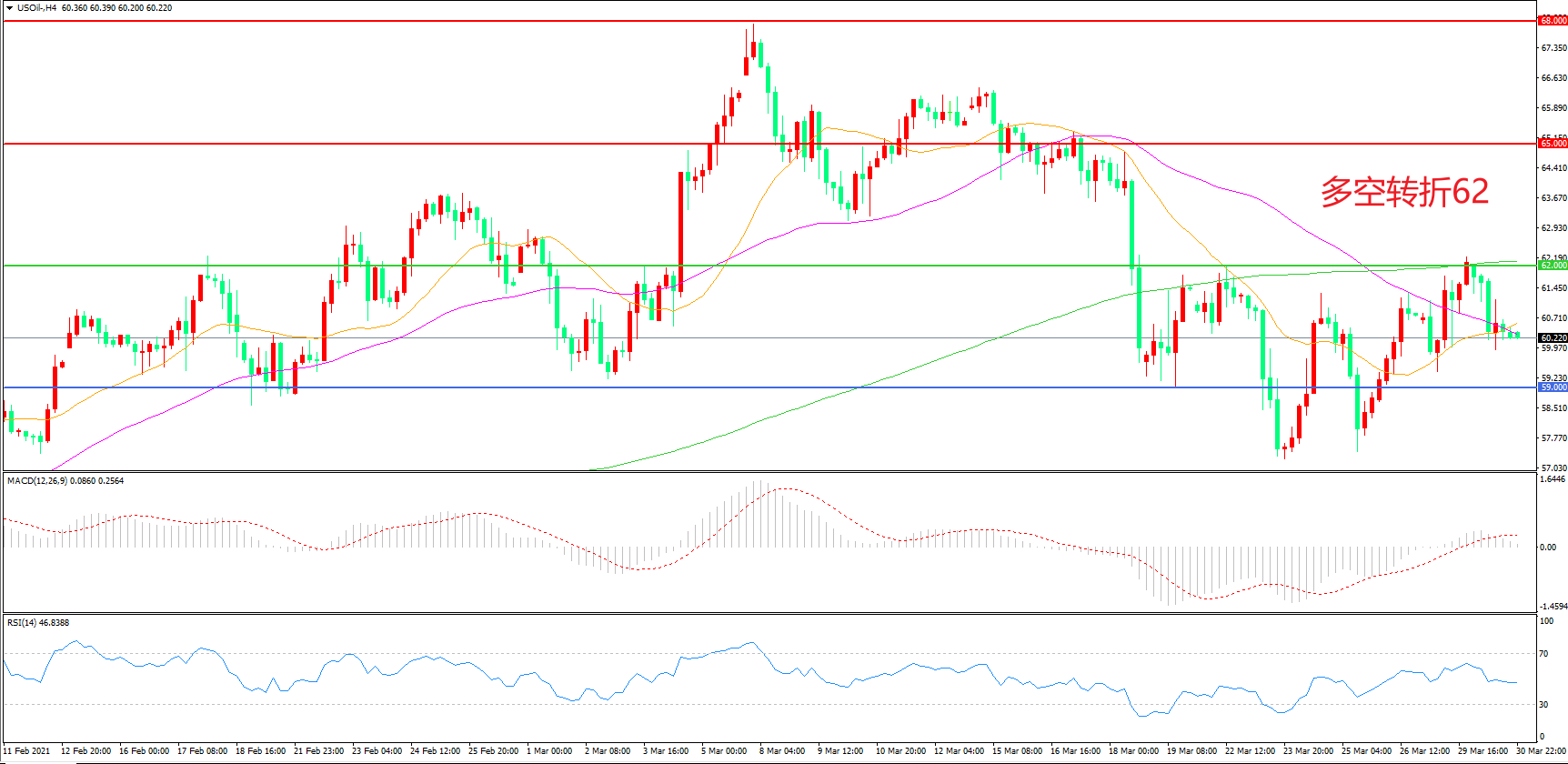 交易策略:在62.00之下看跌,目标58.00    53.00