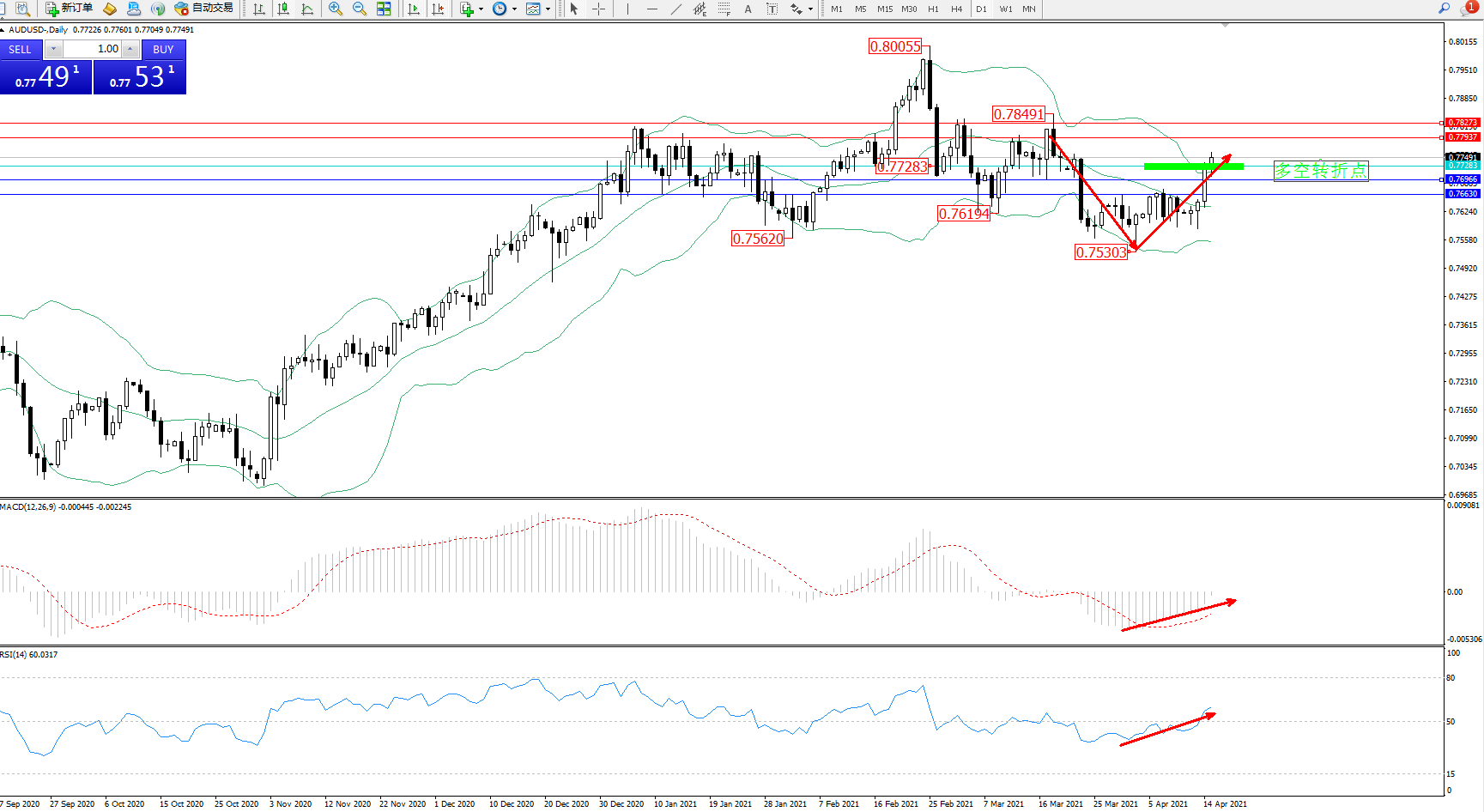 交易策略:077283上方看涨,目标0.77937、0.78273