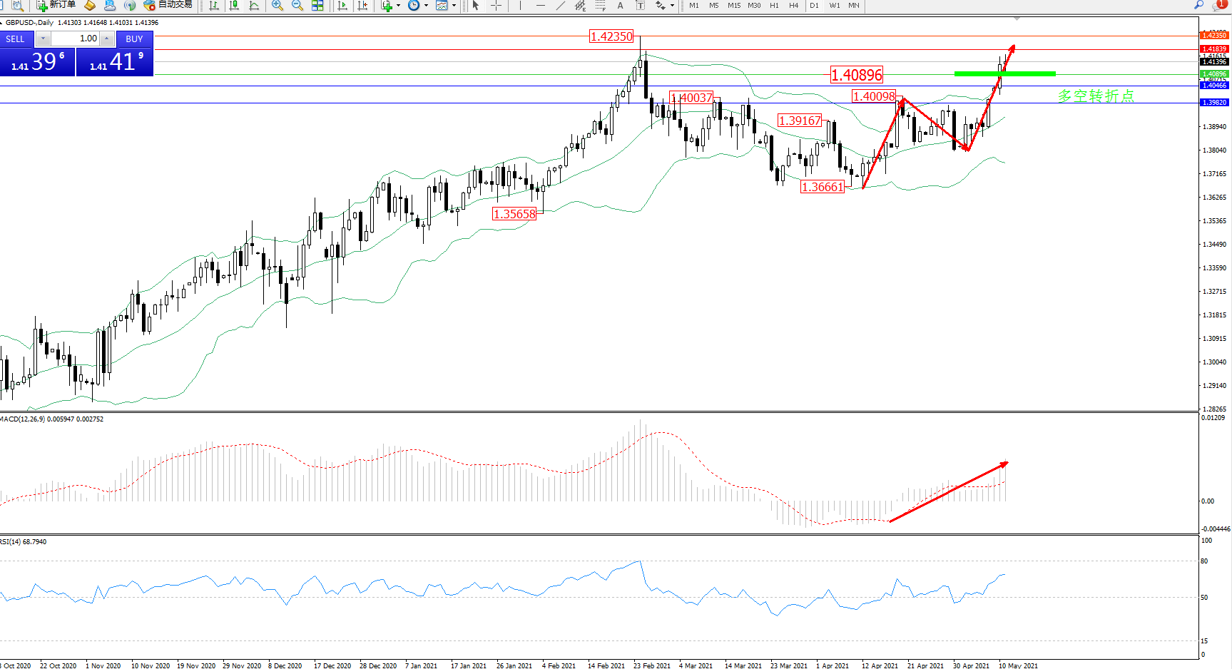 交易策略:1.40896上方看涨,目标1.41839、142350