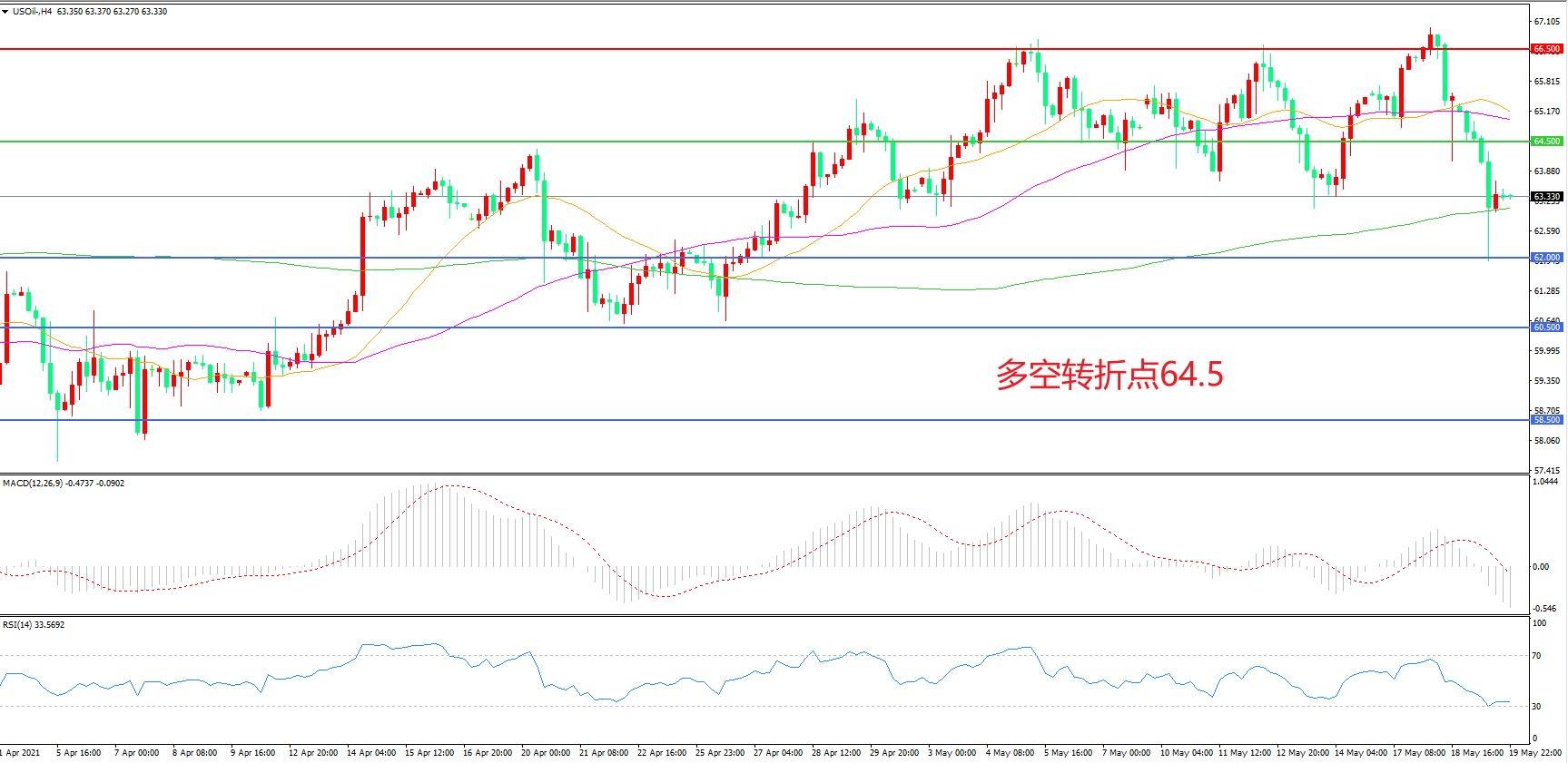 周三(5月19日),伊朗总统表示伊核谈判新一轮会议取得重大进展,并且其他国家也站出来说伊核协议有相当不错的成绩,投资者担心伊朗回归市场会影响当前的油价。美国WTI原油重挫逾2%,收报63.33美元/桶。昨天美联储会议对于未来的货币政策似乎有所转变,其鸽派的程度不及市场预期,如果美联储在未来收紧货币政策减少流动性,对于整个大宗商品来说都将是一次巨大的打击。