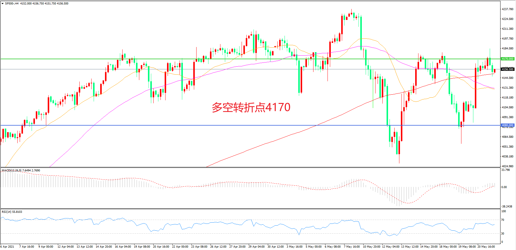 上周五(5月21日),美国费城联储主席哈克由鸽派转鹰派,此后称联储讨论缩减QE宜早不宜迟,高开的美国股指受此影响逐渐回落,在苹果等龙头科技股全线下跌的压力下,标普500盘中转跌,收报4156.50点。标普500指数自2月以来首次连跌两周。投资者依然关注通胀对美联储政策预期的影响,由加密货币暴跌带来的风险偏好变化或将成为短期市场动荡的诱因。