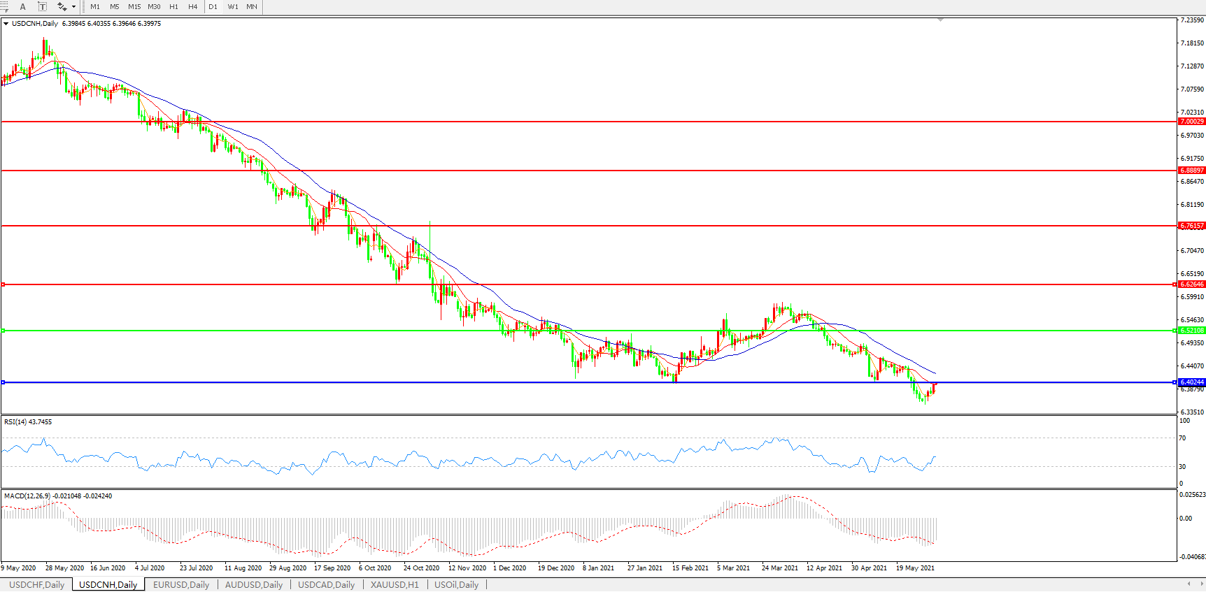 美元兑人民币USDCNH    日线图: