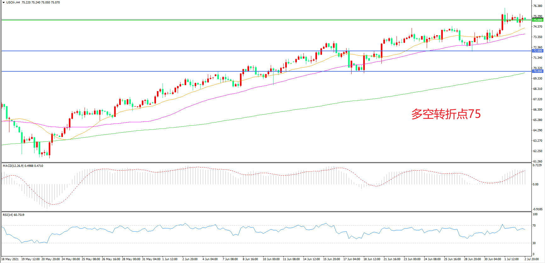 交易策略:在75.00之上看涨,目标78.00 80.00