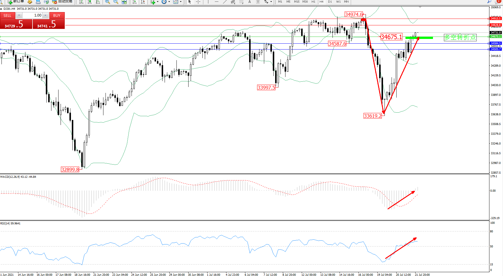 道琼斯指数7月21日(周三)收盘上涨285.94点,涨幅0.83%,报34797.93点;美股全线收涨,道指初步收涨 ,企业财报转移了市场对疫情经济影响的关注,提振美国股市上涨。10年期美国国债收益率在1.2%上方进一步上升。 美国国会参议院共和党人已经有足够多票数来阻止参议院全体讨论基建计划,投票仍在继续。