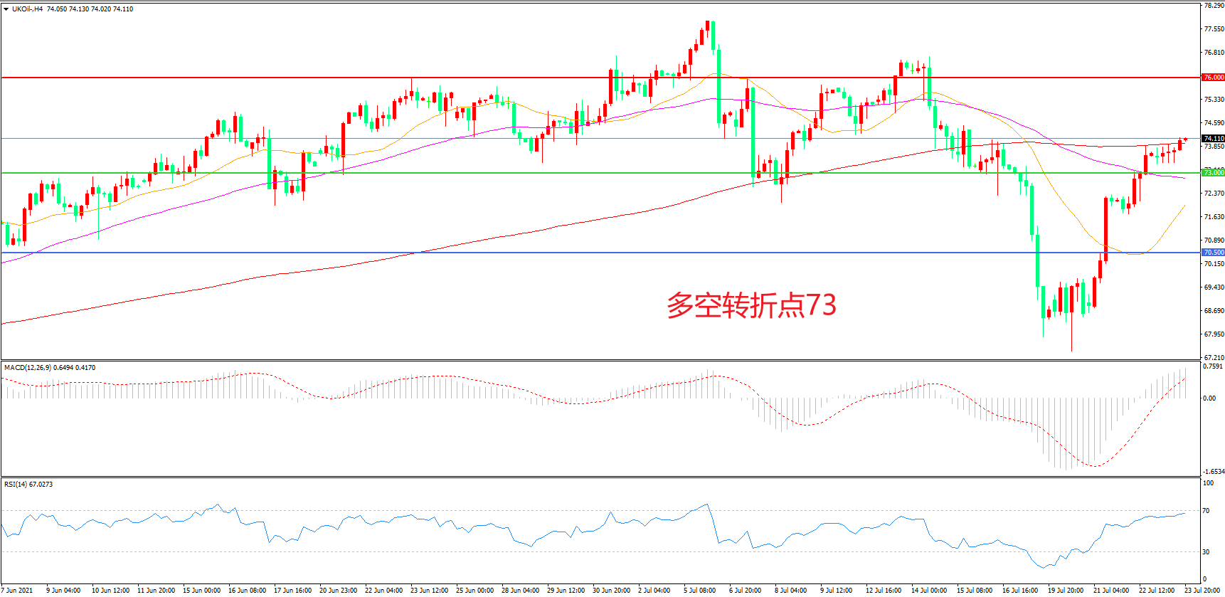 交易策略:在73.00之上看涨,目标76.00 79.00