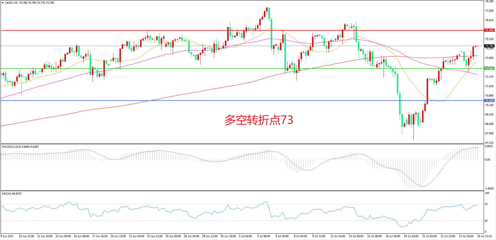 交易策略:在73.00之上看涨,目标76.00               79.00