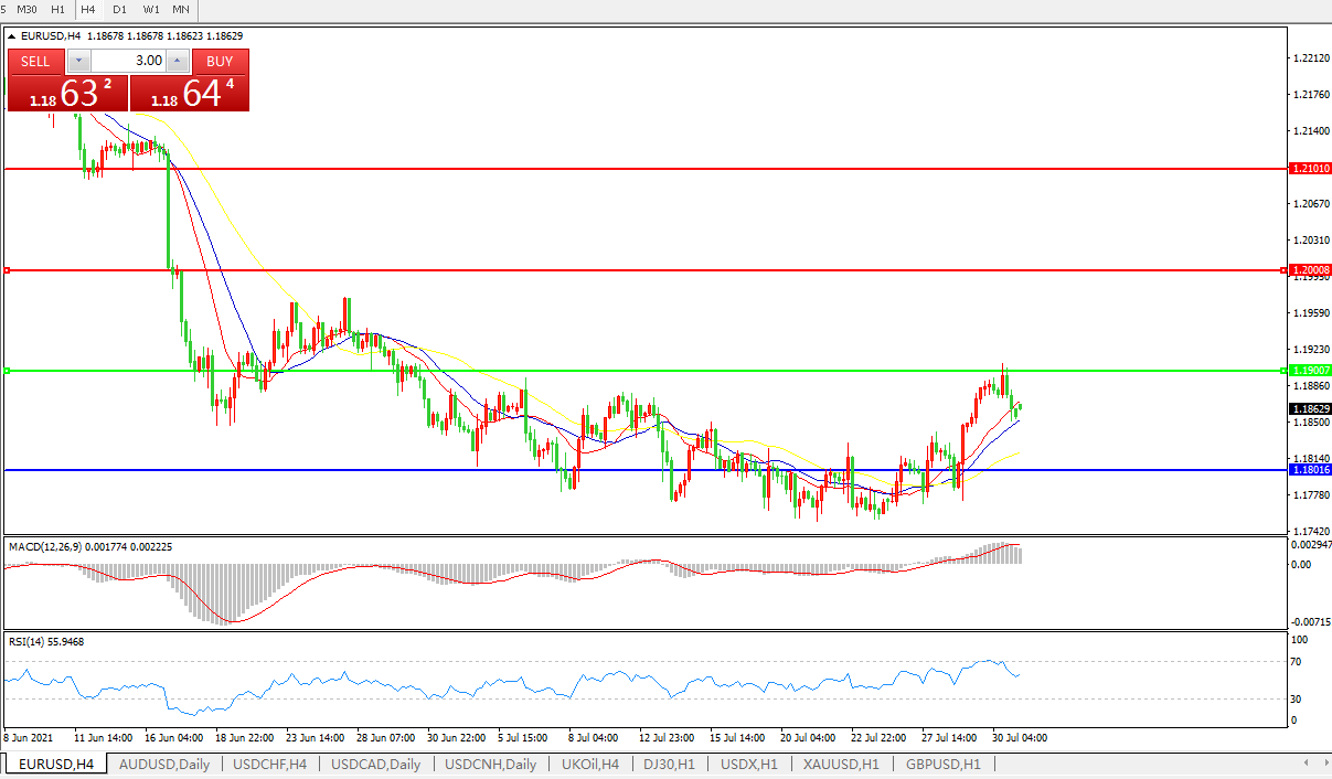 交易策略:1.1900下方看跌,目标1.1800、1.1700