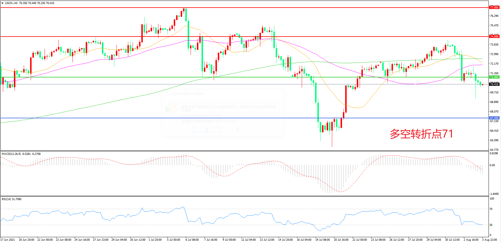 多空转折点:71.00