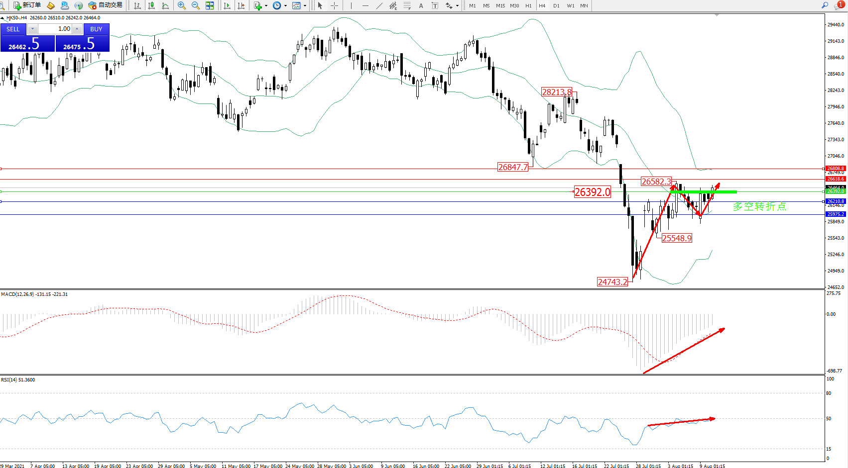 技术点评:低位多头动力持续震荡上移至布林带指标通道中上轨区间窄幅震荡,多头动力单只整理后开始缓慢向上移动,布林带指标呈收口走势后开始有上移迹象,MACD指标低位多头动力维持震荡上移走势中,RSI指标处于50均衡线下侧弱势徘徊中;