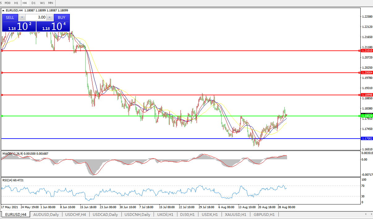 交易策略:1.1800上方看涨,目标1.1900、1.2000