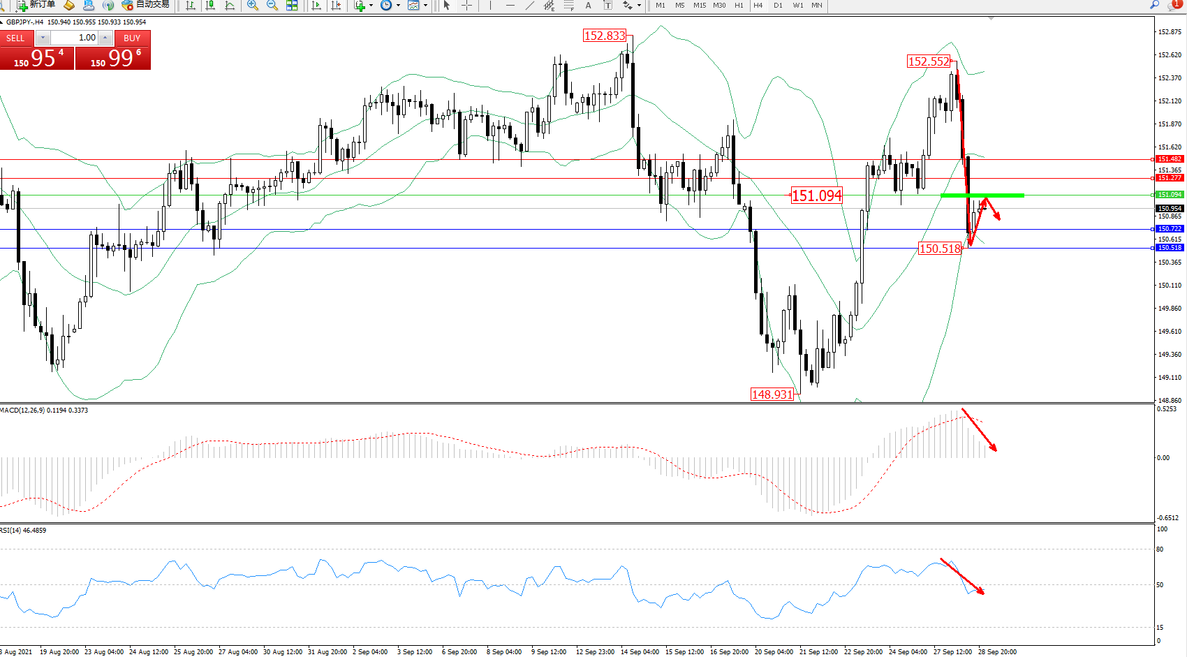 技术点评:高位空头动力急转直下,跌破布林带指标下轨至150.518位置后快速回升,纠结于布林带指标下轨附近节点附近开始震荡,短期有进一步向下移动态势,布林带指标呈收口走势后开始有缓慢张口迹象,MACD指标处于多头区域高位震荡回撤下行,RSI指标回撤至50均衡线下方维持整理;