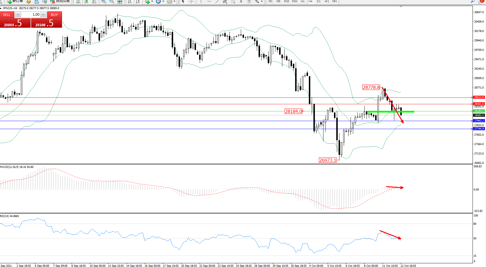 日经225指数10月12日(周二)收盘下跌275.70点,跌幅0.97%,报28222.50点。数据显示,由于原材料成本继续上升,日本9月批发价格较上年同期飙升6.3%,为2008年9月来最大同比增幅,表明全球商品通胀正在挤压企业的获利。CGPI衡量的是企业彼此之间收取的商品和服务价格。9月国内最终商品价格较上年同期上升1.8%。该数据大致追踪消费者物价指数趋势。CGPI的增长是由包括木材、燃料和有色金属等广泛的原材料价格上涨所推动的。而由于需求疲软,企业无法将上涨的成本完全转嫁给消费者,受惠于强劲的外部需求,日本经济正在逐步恢复,但投入成本上升、供应紧张和消费疲软给前景蒙上阴影。