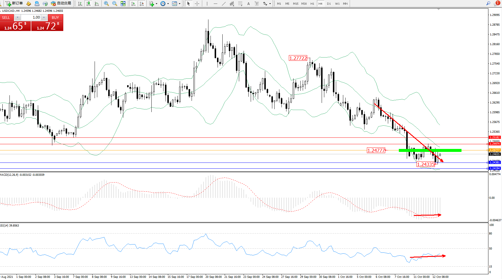 交易策略:1.24777下方看跌,目标1.24381、1.24194