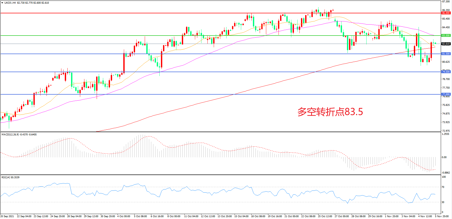 交易策略:在83.50之下看跌,目标81.50                 79.50