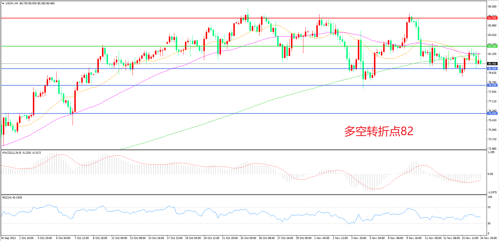 周二(11月16日),IEA月报展望中明确提出,随着供应的快速回归,原油库存趋势正在发生变化,油价涨势即将结束,美国WTI原油冲高回落,收报80.62美元/桶。周三(11月17日)凌晨,美国石油协会公布的API数据增加65.5万桶,超出市场预期,如果晚间EIA能够提供更多利好,有望给油市多头提供更多信心。