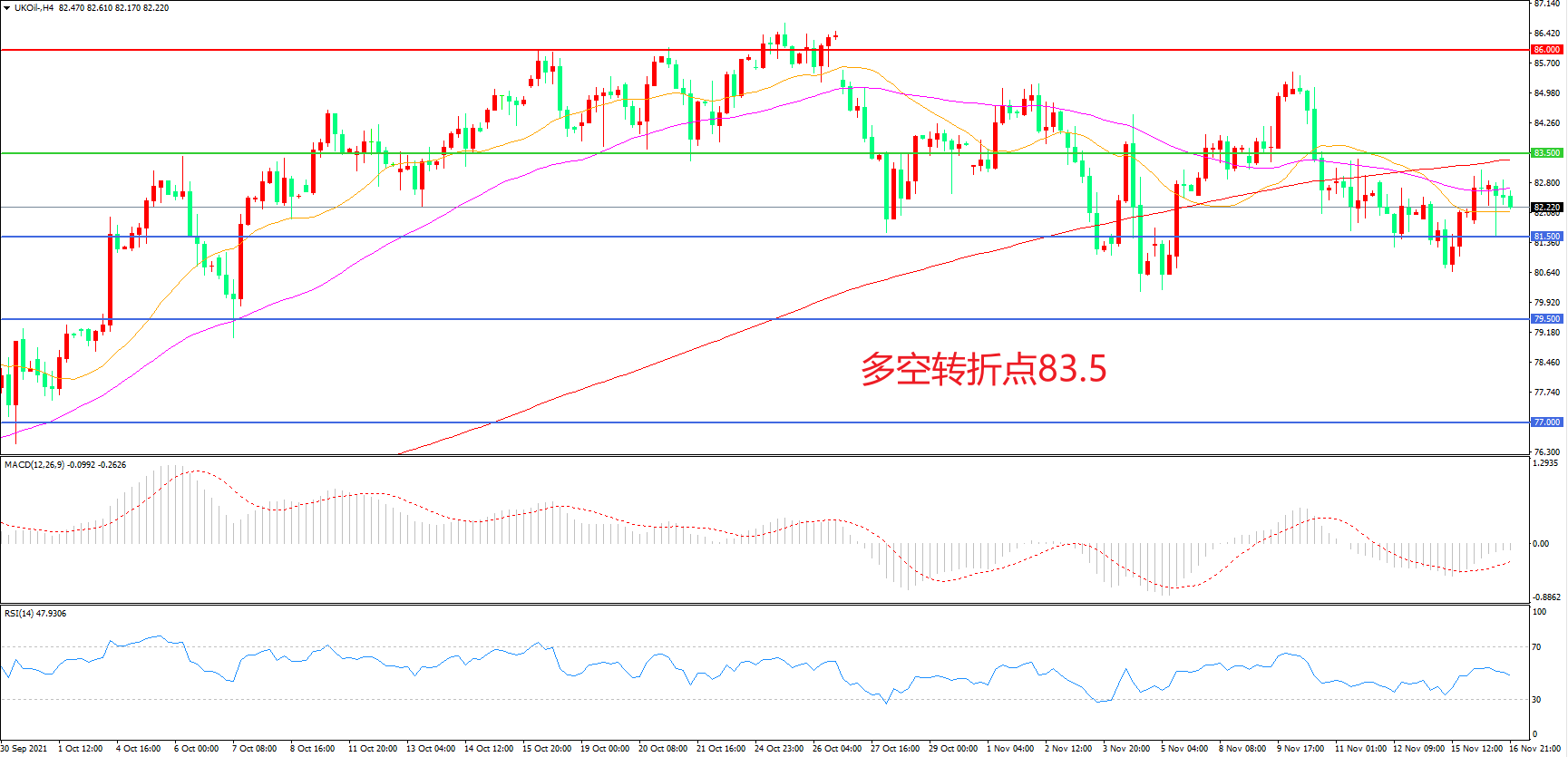周二(11月16日),IEA月报展望中明确提出,随着供应的快速回归,原油库存趋势正在发生变化,油价涨势即将结束,布伦特原油冲高回落,收报82.22美元/桶。周三(11月17日)凌晨,美国石油协会公布的API数据增加65.5万桶,超出市场预期,如果晚间EIA能够提供更多利好,有望给油市多头提供更多信心。