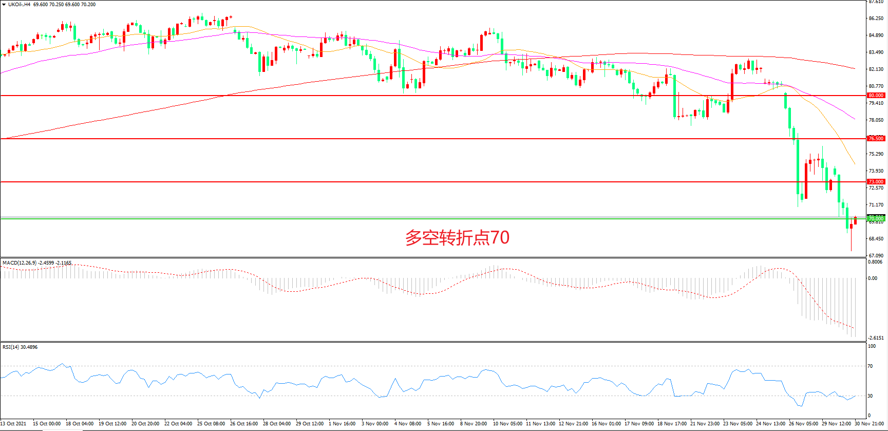 交易策略:在70.00之下看跌,目标67.50 65.00