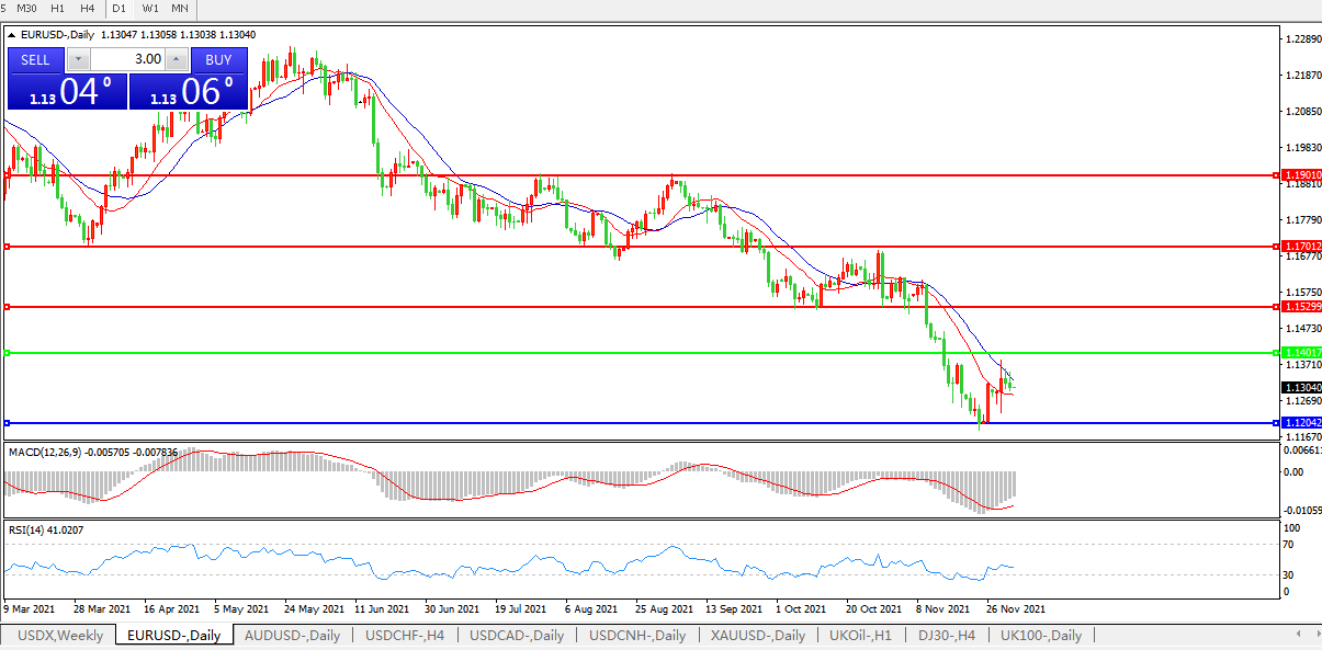 交易策略:1.1400下方看跌,目标1.1200、1.1000