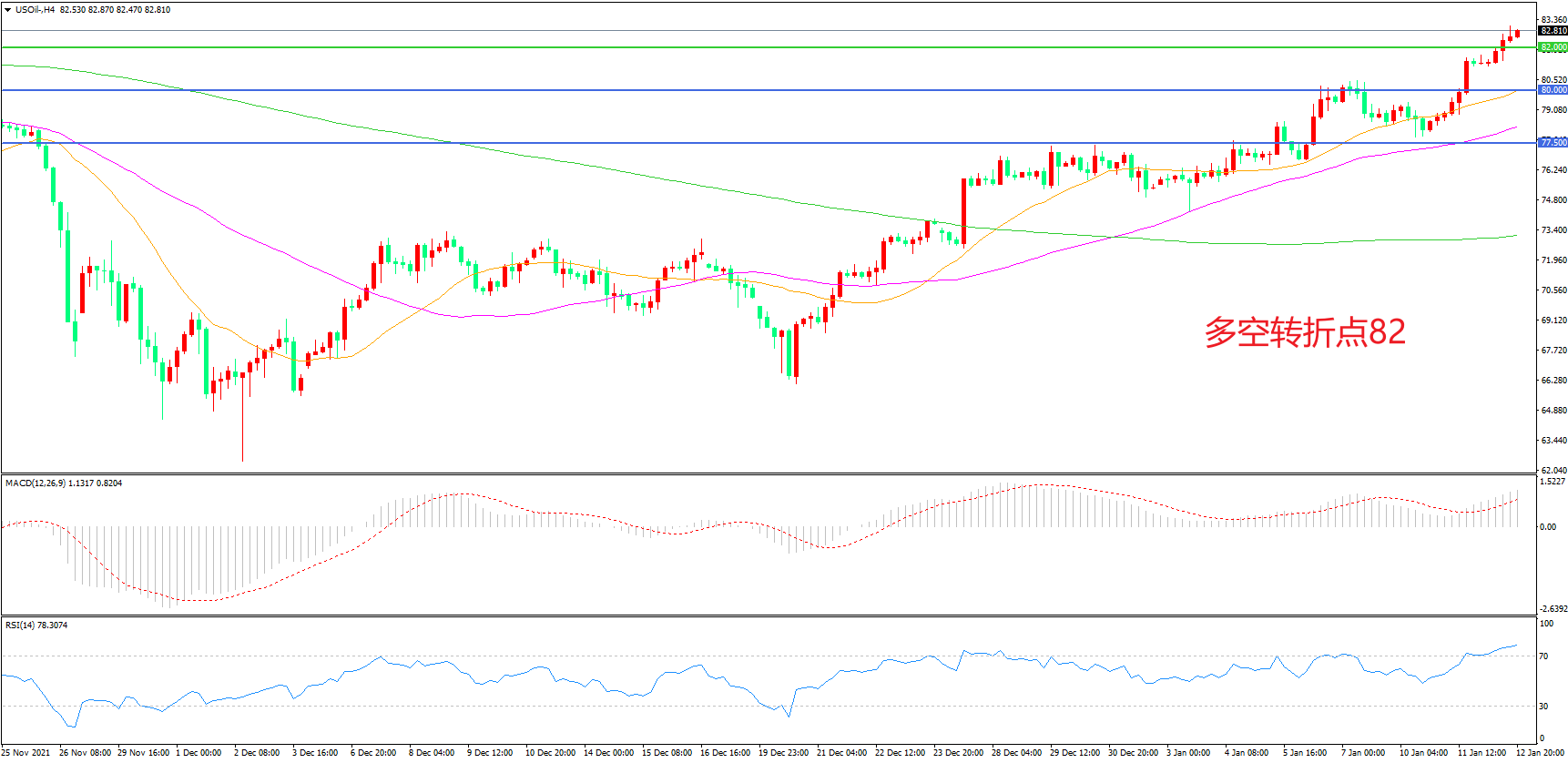 多空转折点:82.00