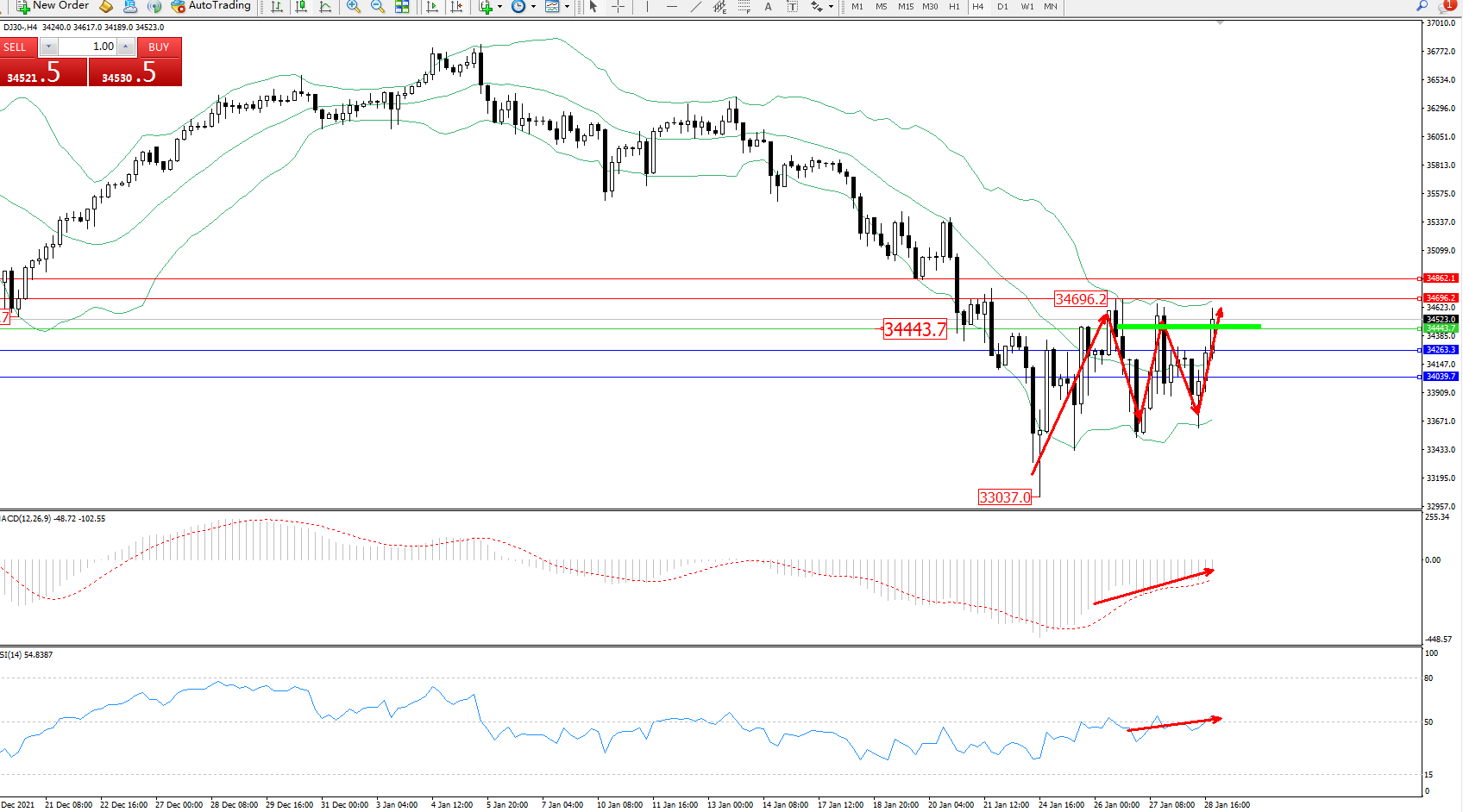 道琼斯指数1月28日(周五)收盘上涨564.76点,涨幅1.65%,报34725.54点;美国股市周五反弹,全周呈现出大幅下跌又强烈反弹的动荡走势;自美联储主席鲍威尔暗示加快收紧政策以来,市场一直在剧烈波动,鲍威尔的态度加剧了投资者对地缘政治紧张局势和企业盈利放缓的担忧。