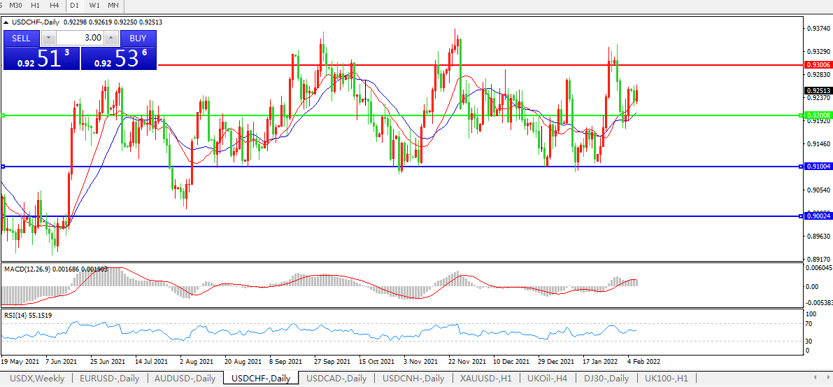 交易策略:0.9200上方看涨,目标0.9300、0.9400