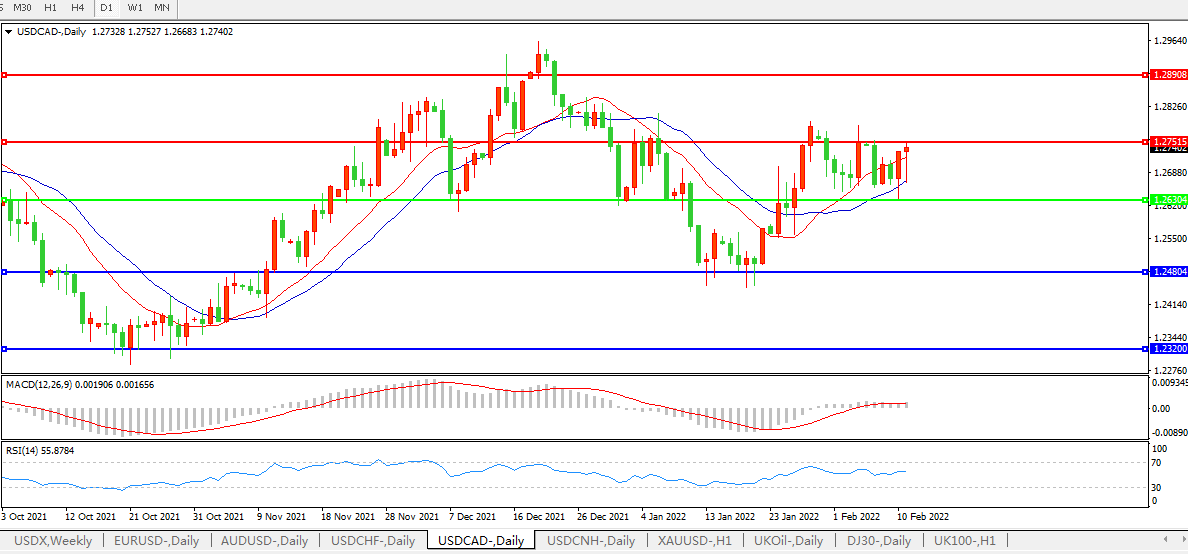 美元兑加元上涨0.14%至1.2737,大宗商品货币走弱;由于卡车司机的抗议活动,加拿大安大略省宣布进入紧急状态。