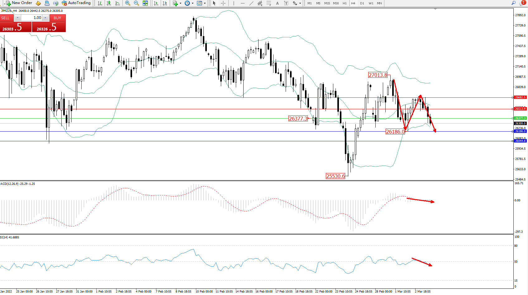 日经指数JPN225——4小时K线图显示: