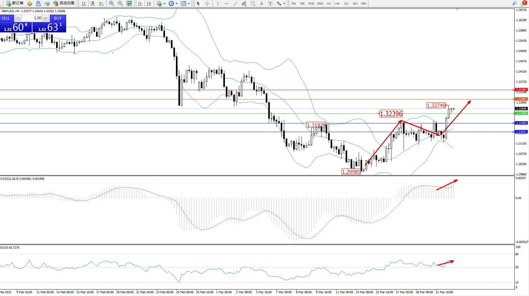 交易策略:1.32396上方看涨,目标1.32992、1.33381