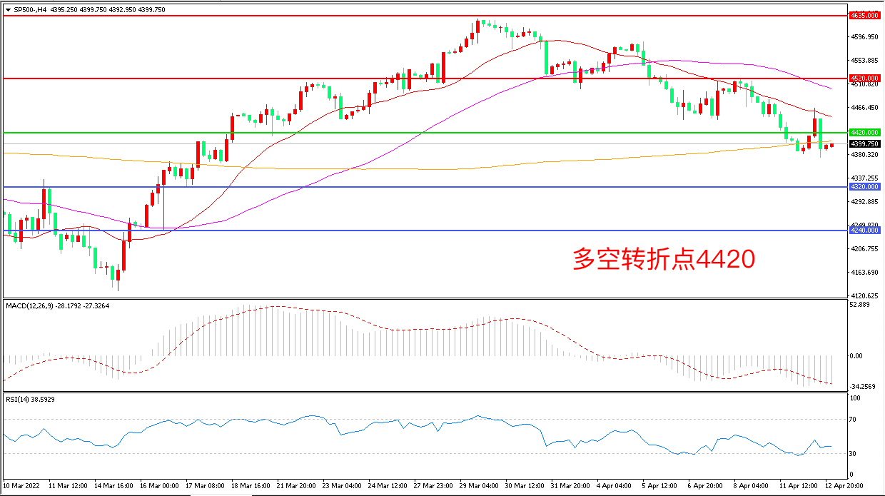 周二(4月12日),美联储理事布雷纳德表示,美联储将“迅速”采取行动提高利率,缩表与加息预期持续打压市场,高开的美股未能维持反弹之势,标普500高开低走,收报4397.05点。目前越来越多的投资者预测,美国经济活动将萎缩,蓝筹科技股的低迷表现将持续对美股形成影响。
