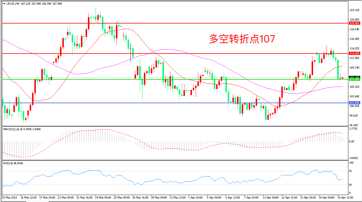 周二(4月19日),美联储官员的偏鹰派表态以及IMF下调全球经济增速让投资者变得更加谨慎,市场风险情绪降温,布伦特原油遭受重挫,收报107.44/桶。周三(4月20日)凌晨公布的API数据意外减少449万桶,如果晚间EIA数据与此表现一致,将有利于油价企稳,俄乌重新开战的背景下,短期内油价易涨难跌。