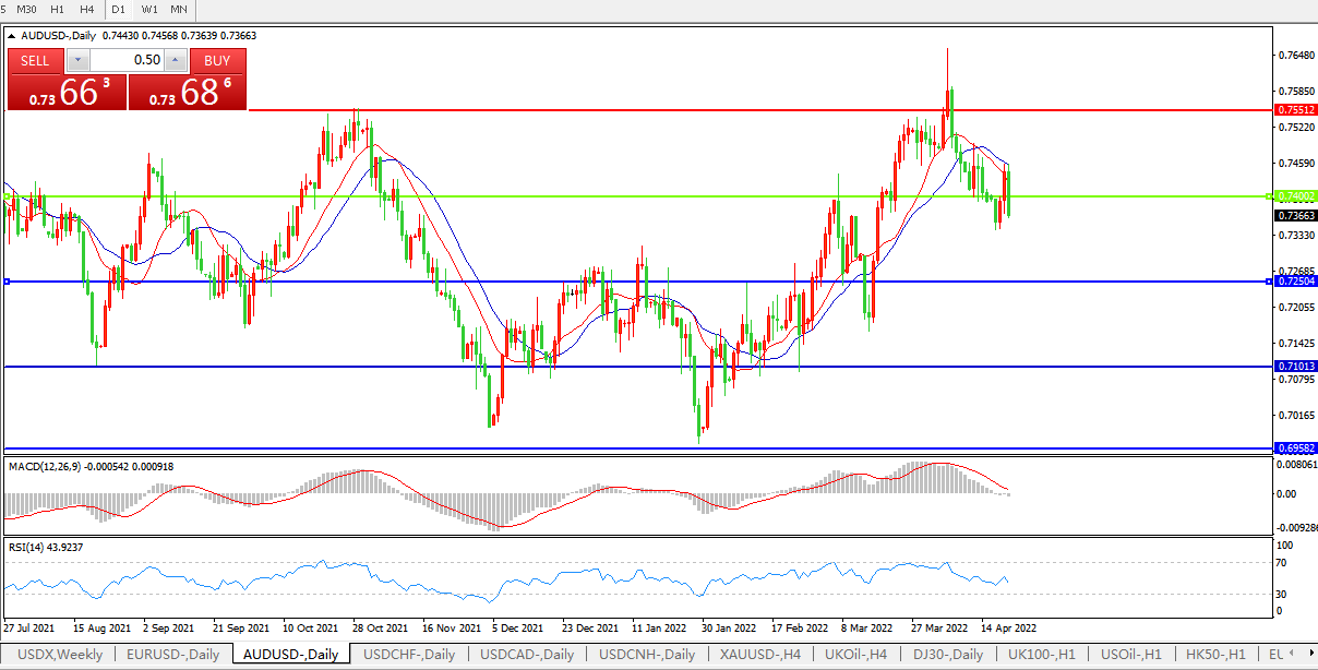 备选策略:0.7400上方看涨,目标0.7550、0.7650