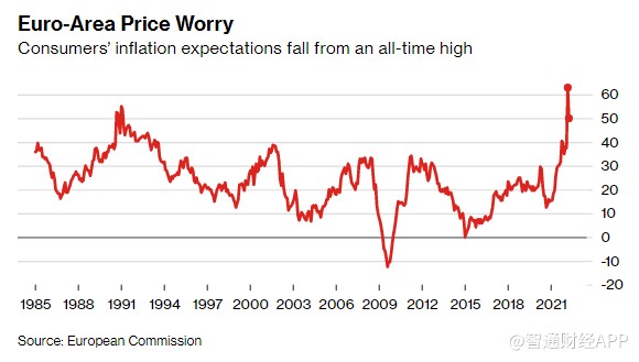 通胀预期指数从1985年有记录以来的最高水平62.9回落至50。
