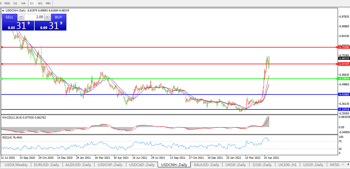 交易策略:在6.5385之上,看涨,目标价位为6.6416,然后为6.7600。