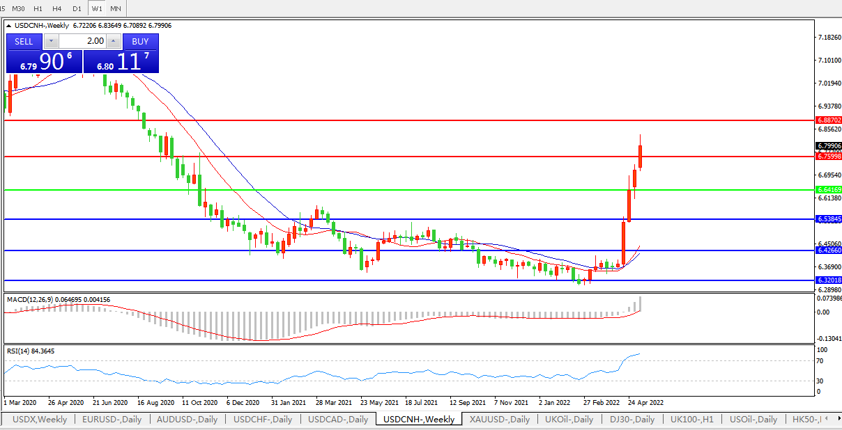 中国建设银行表示,美联储5月会议如期加息50BPs,并宣布6月启动的缩表计划,市场预期后面两次会议将连续加息50BPs。对俄制裁导致大宗商品价格高位横盘,美国通胀预期仍然高企。俄乌紧张局势推动避险情绪抬升,支撑美元高位震荡。展望后市,美元指数仍处于上涨趋势,在快速加息的预期和缩表形势下依然会偏强,高位盘整的概率较大,预计5月波动区间[100,107]