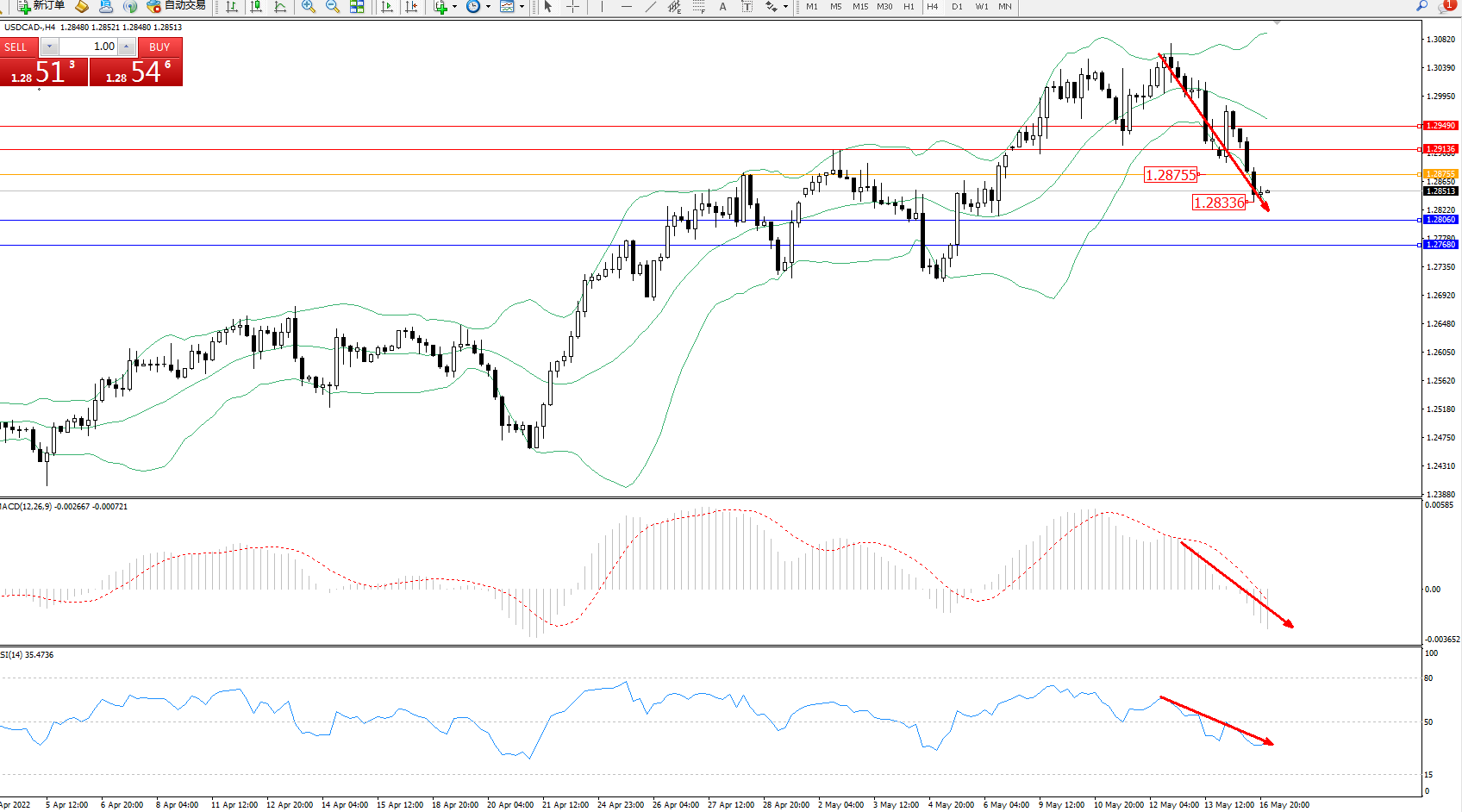 交易策略:1.28755下方看跌,目标1.28060、1.27680