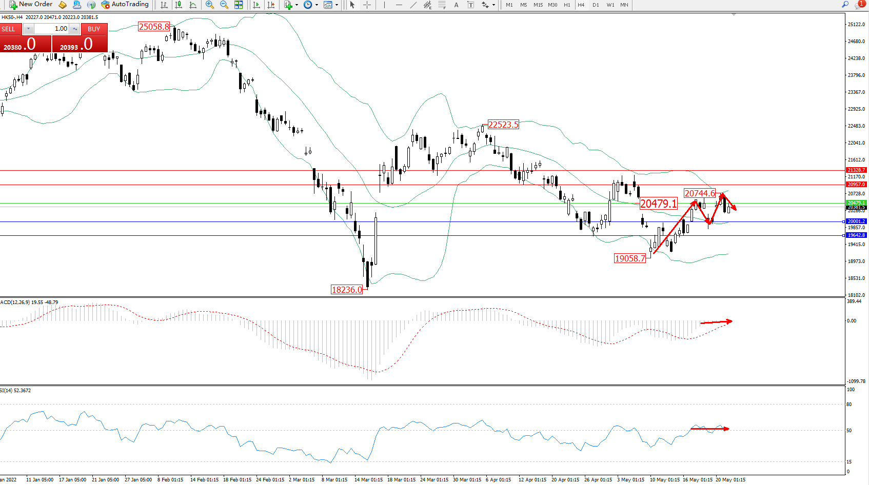 香港恒生指数5月23日(周一)收盘下跌247.18点,跌幅1.19%,报20470.06点;拜登考虑降低对中国关税,港股午后跌幅缩窄,恒指跌幅一度缩窄至1%以内,但最终收跌1.19%,科技股疲弱,恒生科技指数跌2.49%。恒生指数公司公布季检结果,获恒指纳入的中国宏桥、东方海外国际、中芯国际皆逆势上涨,瑞声科技遭剔除跌近7%。