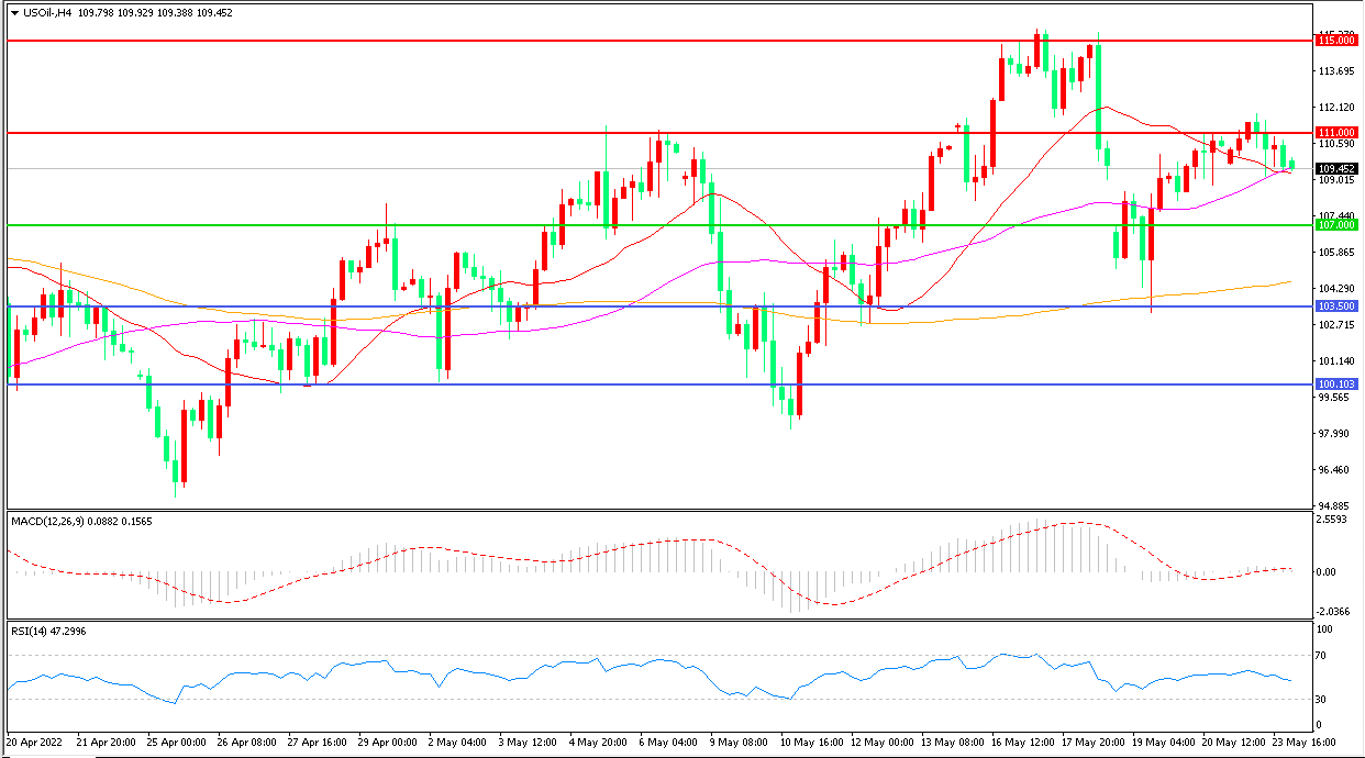 周一(5月23日),美国原油市场需求增加给油价带来一些支持,俄乌冲突博弈加剧等因素也在地缘政治上提供了利多因素,美国WTI原油小幅走高,收报109.90美元/桶。随着经济衰退风险临近,供应因素变化增多,油价的高位震荡局势还是很难撼动,但油价短线回调可能在增加,市场无序波动行情较,注意回避风险。