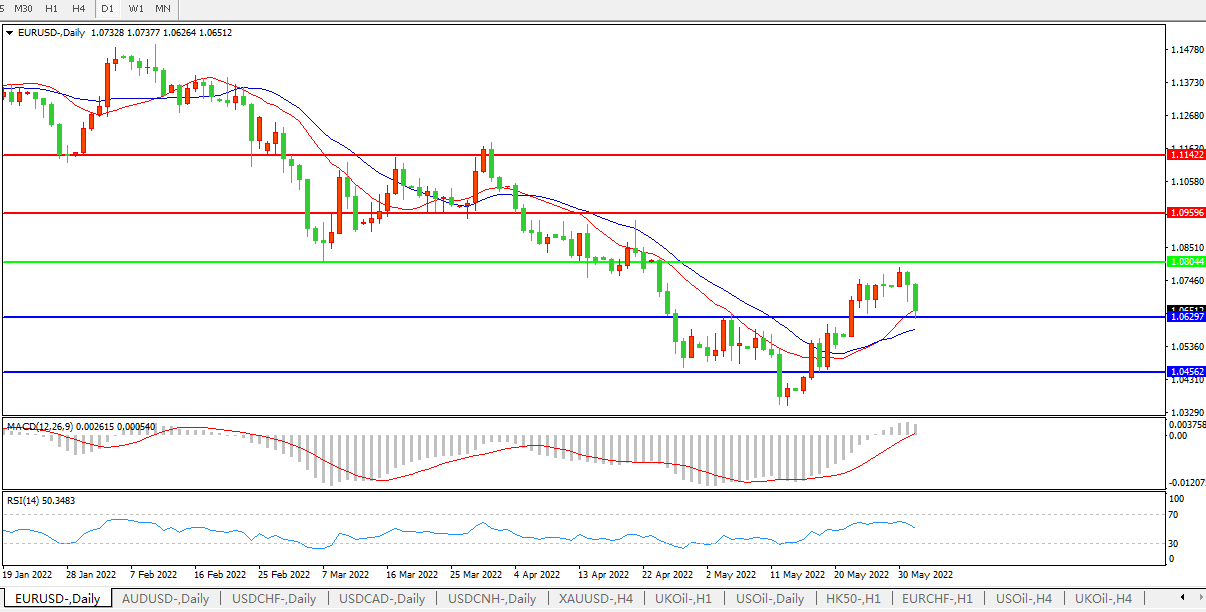 技术面简析:日图均线呈多头排列但汇价开始走弱,汇价整理承压于多空转折区域后开始下行,MACD运行于0轴上方但量能不足,RSI开始走弱,预计短期汇价大概率将继续下行。