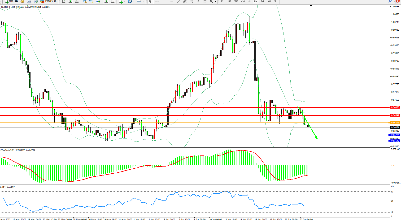 交易策略:0.96258下方看跌,目标0.95774、0.95542