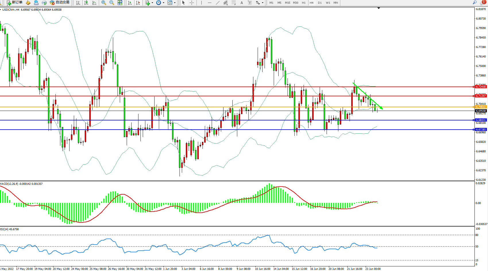交易策略:6.70022下方看跌,目标6.68431、6.67285
