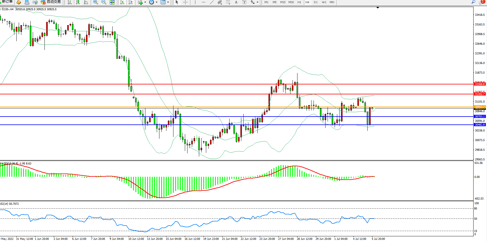 道琼斯指数7月5日(周二)收盘下跌129.81点,跌幅0.42%,报30967.45点;节后美国股市大跌,经济衰退担忧笼罩市场。美国消费价格远未见顶,5月份通胀率飙升至8.6%,美联储放缓货币紧缩的空间很小。