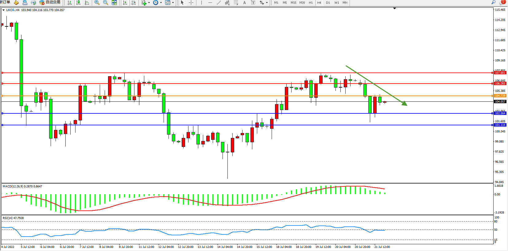 布油维持104.057附近震荡,由俄罗斯向德国输送天然气的“北溪-1”天然气管道结束年度常规维护,恢复供气。德国能源机构联邦网络局局长穆勒说,目前“北溪-1”的天然气输送量高于预期。
