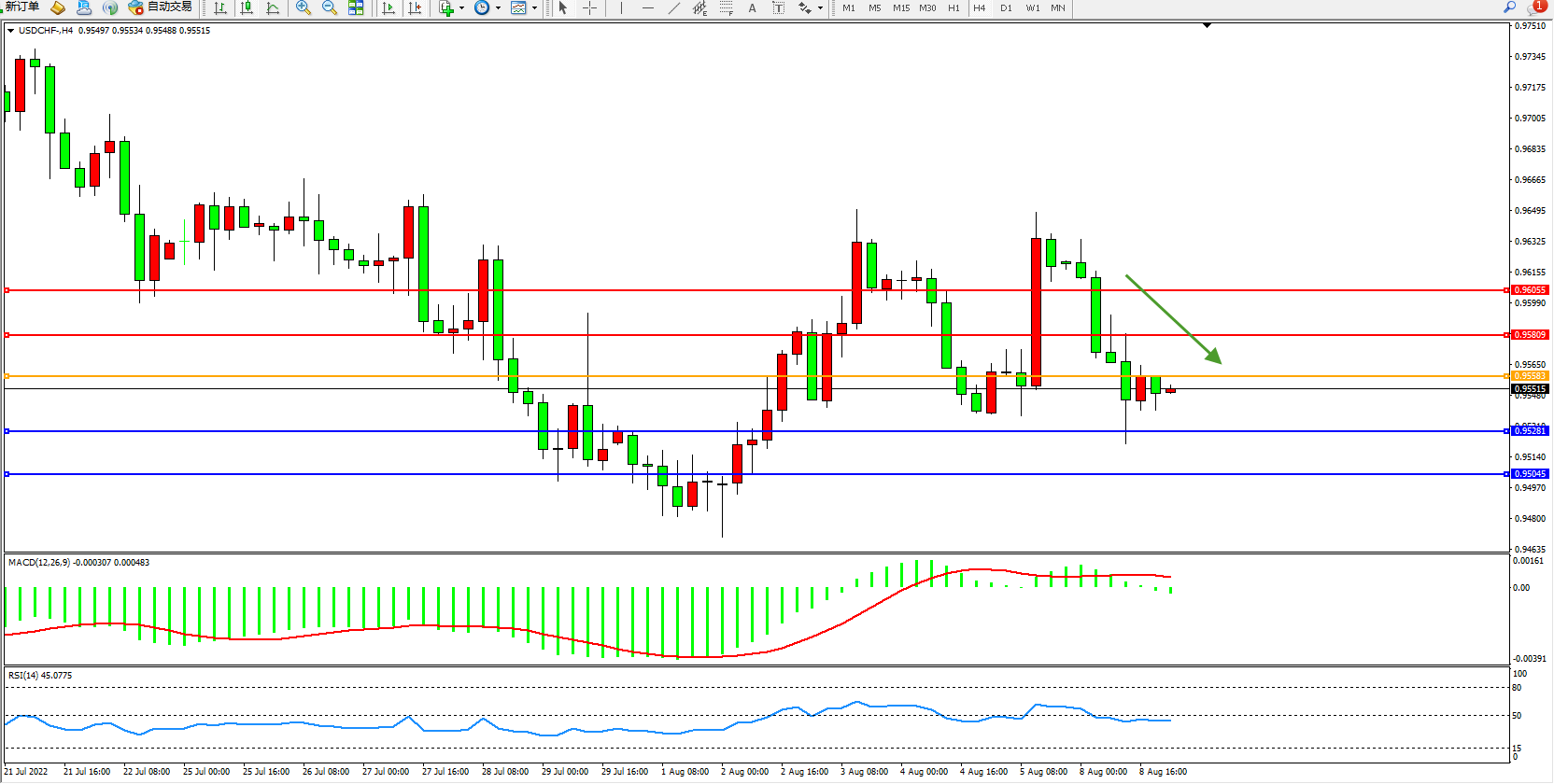 交易策略:0.95583下方看跌,目标0.95281、0.95045