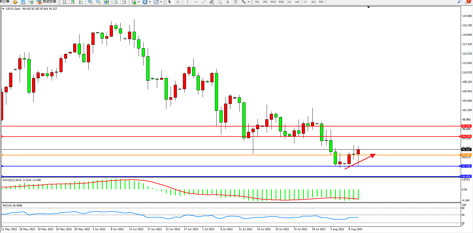 原油USOil——4小时K线图显示:
