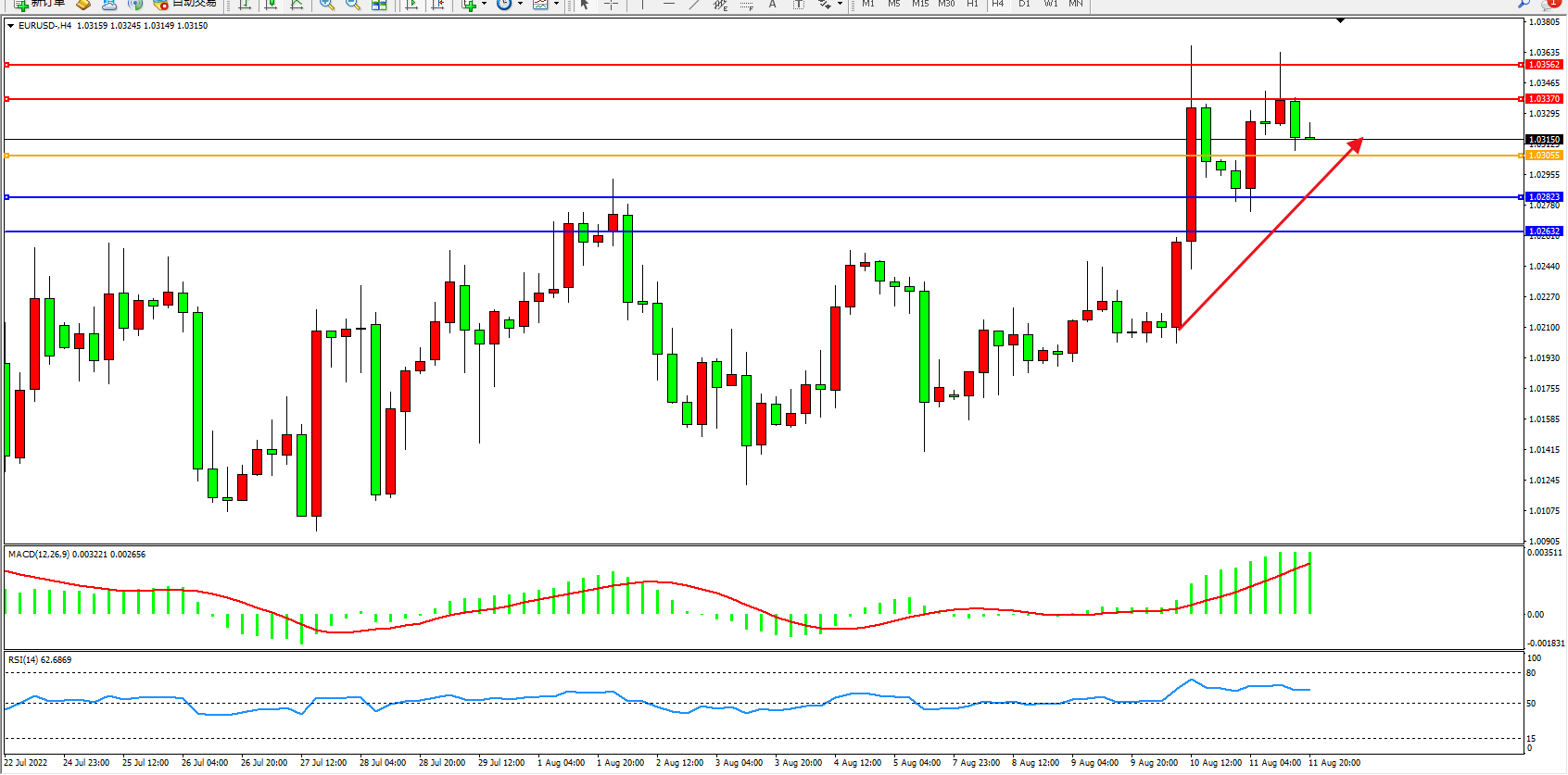 4小时图看:高位震荡持续上扬,短期拉升后或维持向上拉升,MACD指标处于多头区域高位整理,RSI指标处于多头区域弱势徘徊;