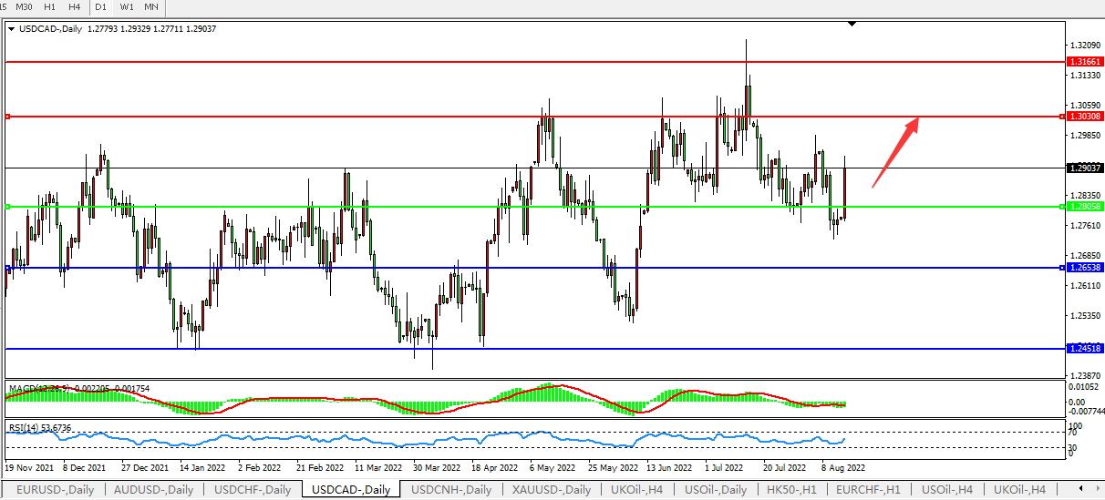 日线图看:短期汇价止跌后迅速拉升,MACD运行于0轴下且量能小幅缩量,RSI快速走强,预计短期汇价大概率将进一步上行。