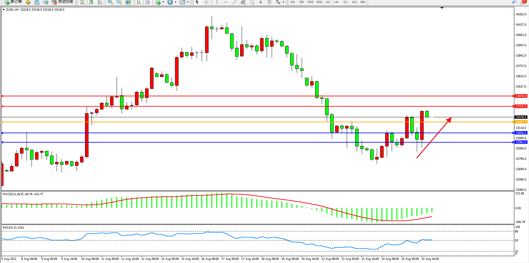 道琼斯指数8月25日(周四)收盘上涨324.43点,涨幅0.98%,报33293.66点;受英伟达和其他科技相关股上涨提振,投资者关注美联储的杰克森霍尔会议,以寻找关于美联储政策前景的线索。